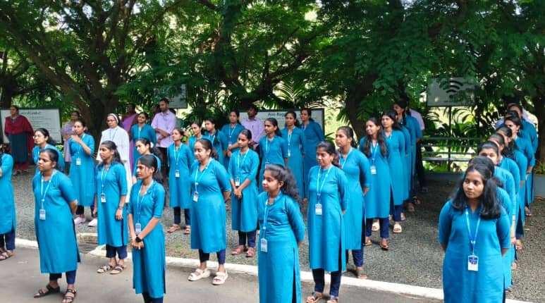 The morning assembly of the Department of Natural Science was conducted on 8th October 2025 as a mock school assembly, intended to train student teachers on how to effectively organize and present an assembly. The program was organized and led by Ashika S Kumar. The assembly began with a prayer rendered by Adithya K M, Anjana James, and Nihaya C, followed by the college prayer led by Arya Nanda P P. The teachers’ prayer was beautifully presented by Nihaya C. After the prayers, Anjana James led the pledge, instilling a sense of patriotism and unity among all present. The thought of the day was shared by Safa S V, which provided an inspiring message for the students. The news reading session was presented by Adithya K M, who updated everyone with the latest happenings. In connection with Indian Air Force Day, Rishada M delivered a thoughtful and informative talk, highlighting the importance of the Indian Air Force and its role in national defense. The assembly also included a short exercise session led by Ashika S Kumar, encouraging physical fitness and enthusiasm among students. The presence of Head Master Jameema V P and Principal Jessy N C added grace to the program. The assembly concluded with the National Anthem, marking a respectful end to the morning gathering. Overall, the program was well-organized, disciplined, and inspiring, reflecting the collective effort and coordination of the Department of Natural Science.