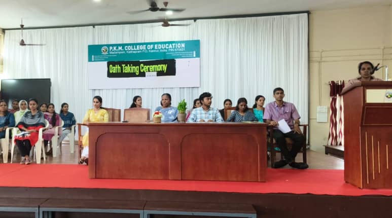 The Oath-Taking Ceremony of the College Union 2025–26 was held on 26th August 2025 at 2.30 pm in the College Auditorium. The Principal, Dr. Jessy N.C., administered the oath to the newly elected members in the presence of IQAC Coordinator Dr. Veena Appukkuttan and NSS Coordinator and Returning Officer Dr. Fr. Sinoj Joseph. The Union comprises seven office bearers, including the Chairperson, General Secretary, University Union Councillor, Fine Arts Secretary, Student Editor, along with representatives from each optional subject. The members solemnly pledged to uphold their responsibilities and serve the student community with sincerity and dedication. The presence of the second-year Class Representatives was also duly acknowledged.