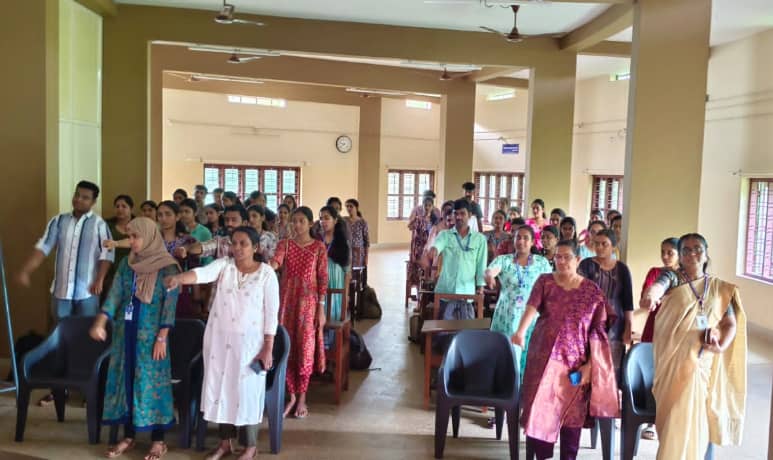 As part of the Dolphin Conservation Awareness activities initiated by the Ministry of Environment, Forest and Climate Change and the National Museum of Natural History, Government of India, the Department of Natural Science of P.K.M. College of Education, in association with the Bhoomithrasena Club and IQAC, organized a series of awareness programmes titled “Echo Blue” on 30th June 2025 at 9:30 AM in the Multipurpose Hall. The programme commenced with a warm welcome address delivered by Ms. Akshaya C., Student Coordinator of the Bhoomithrasena Club. This was followed by the Dolphin Conservation Pledge, led by Mrs. Jomol Jose, Assistant Professor, Department of Natural Science, with enthusiastic participation from both staff and students. Subsequently, Ms. Sonima Krishnan C., Student Coordinator, delivered an insightful talk on dolphins, covering various topics such as species diversity, food habits, habitat, threats due to pollution, and effective conservation strategies. A short documentary video on Dolphin Conservation was also presented, further enhancing the understanding of participants on the subject. The programme concluded with a vote of thanks by Ms. Athira N., another Student Coordinator of the Bhoomithrasena Club. As part of the awareness campaign, a rally was also organized under the theme “Conserve All Dolphins – In Freshwater and Marine Ecosystems”. A total of 60 participants, including students and staff, actively took part in the rally.