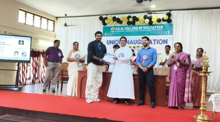 The College Union “Samhathi” for the academic year 2025–2026 was inaugurated by Dr. Sujith K. V., Director of Student Services (DSS), Kannur University, and Associate Professor, Department of Chemistry, Payyannur College. The inaugural ceremony, held on 7th October 2025 in the college auditorium, was presided over by Union Chairperson Arun K. Principal Dr. Jessy N. C. delivered the principal address, while Pro-Manager Rev. Fr. Joy Kattiyankal delivered the benedictory address. Union Vice Chairperson Nandana C. welcomed the gathering. P.T.A. President Mr. Joseph T. M., Staff Advisor Dr. Veena Appukuttan, University Union Councillor Akshara S. Manohar, and Second-year Student Representative Amin Mathew offered felicitations. A soulful solo performance was presented by student-teacher Rahana T. Union General Secretary Jwala Thomas proposed the vote of thanks. During the ceremony, certificates were distributed to the students who presented papers at the conference held at St. Thomas College of Teacher Education, Pala. The afternoon session featured a variety of cultural performances by the students.