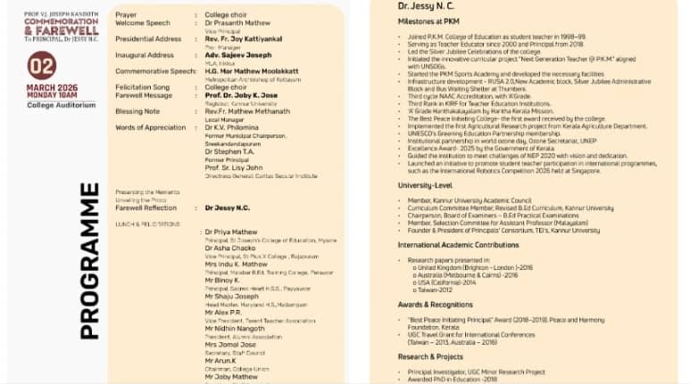PROFESSOR V.J. JOSEPH KANDOTH COMMEMORATION & FAREWELL TO PRINCIPAL, Dr. JESSY N. C ON 02-03-2026